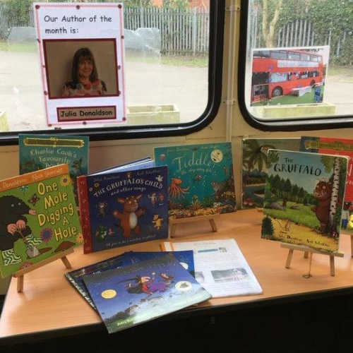 As a school, we continuously promote 'Reading for Pleasure'! Each month we promote an ‘Author of the Month’ on our Library Bus so that we can introduce children to as many new authors as possible. Whilst on the bus, the children can choose from a variety of books written by the author and vote on which story they would like their teacher to read to them. Information about the author is also shared with the children so they learn about their life and what inspired them to write stories.