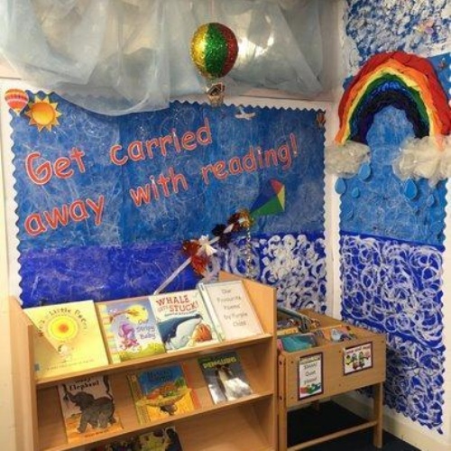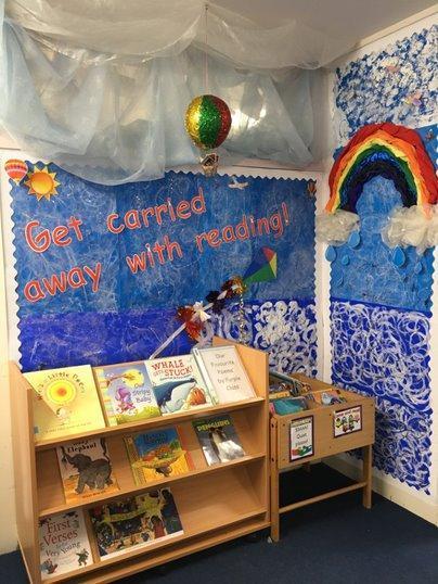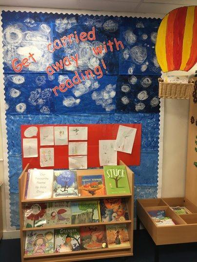 Our book corners have carefully been designed by our imaginative staff to help promote a love of reading, with each year group having their own theme. The books that we have shared and explored together during ‘story time’ are then displayed on our front-facing shelves for the children to read and enjoy again. Books are chosen for all children: those who are still learning to read will retell the story; those who are able to read, will re-read the story. We have a working wall where we can add out thoughts about a book we have all read. We limit the number of books on display and in our book boxes at a time so that we ensure children can easily access the books and are not overwhelmed. More books are introduced over the half-term and others taken out as the term progresses.