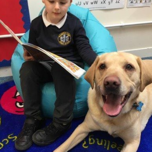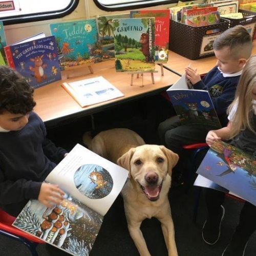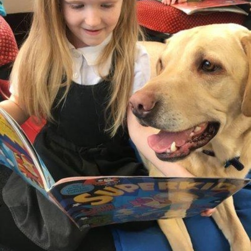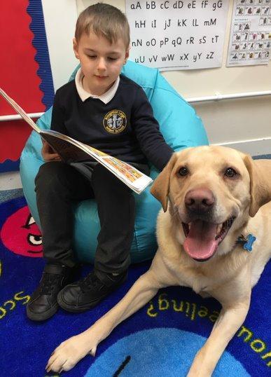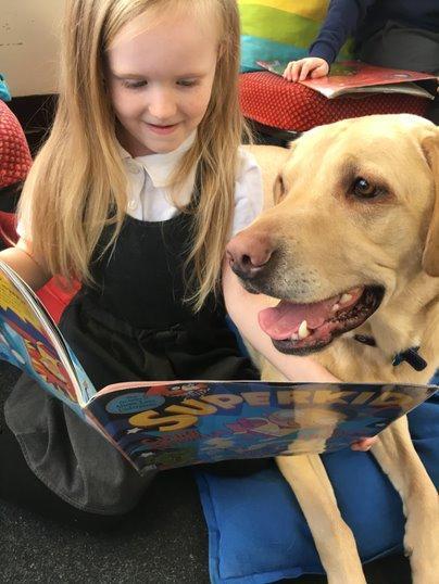 At Boughton Leigh we are so lucky to have our very own school dog! We love to read and share our stories with Buddy!